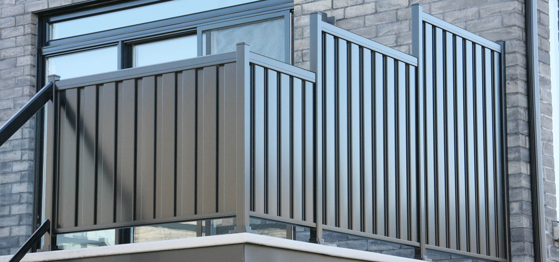 Certains murs d’intimité en aluminium profilé comportent une section du haut composée de barrotins placés à l’horizontale. Cela augmente la hauteur de la cloison et rend votre espace encore plus privé, tout en donnant un style intéressant à la cloison. Ces murs d’intimité avec barrotins horizontaux sont très appréciés par les propriétaires de maisons semi-détachées.